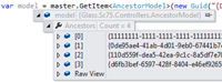 Running and debugging the application I can see that my model now contains a list of the ancestor Guids from my item which will allow me to do a lot of useful tasks within my business logic: